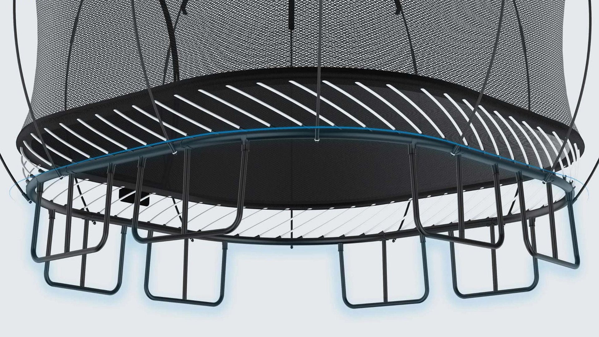 Les tiges composites brevetées qui remplacent les ressorts métalliques du trampoline se trouvent sous la surface de saut, vous donnant la tranquillité d'esprit que vos enfants sauteront en toute sécurité.