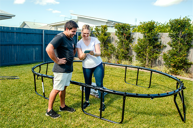 Vous préférez installer votre trampoline vous-même ? Aucun problème ! Pour un expérience d'auto-assemblage transparente, téléchargez simplement le logiciel gratuit APPLICATION BILT pour des instructions rapides, 3D, étape par étape.