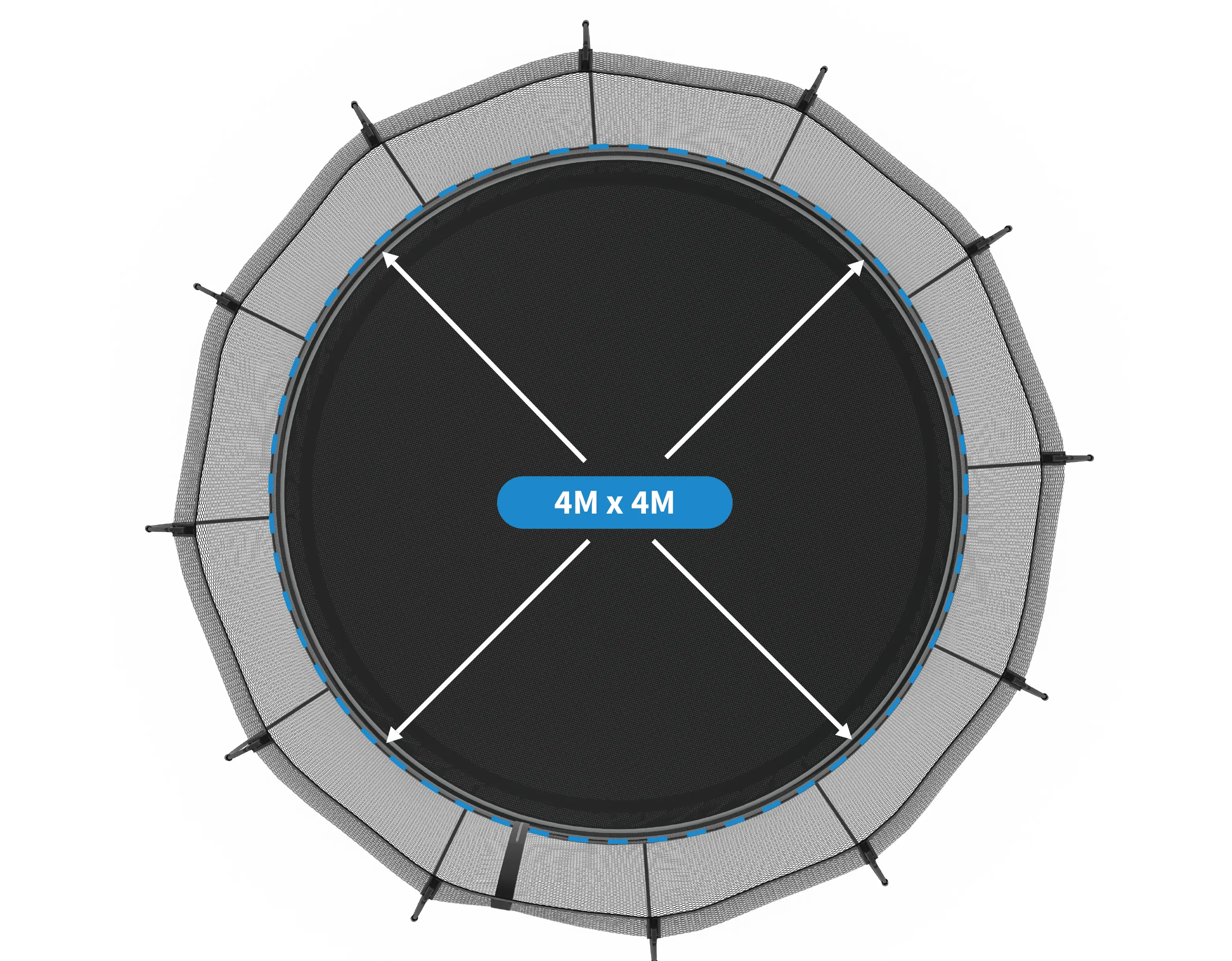 Cadre en acier galvanisé durable positionné sous la surface de saut, bien à l'abri de tout danger.